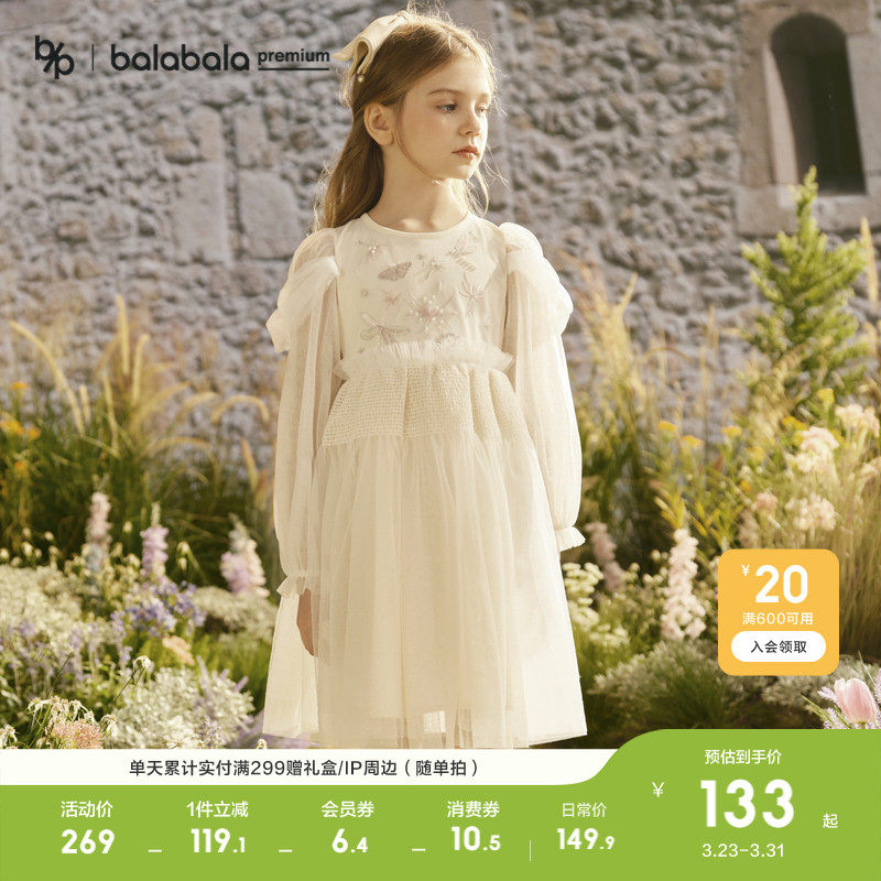 【balaOne】巴拉巴拉童装女童连衣裙2025新款春装网纱裙甜美洋气