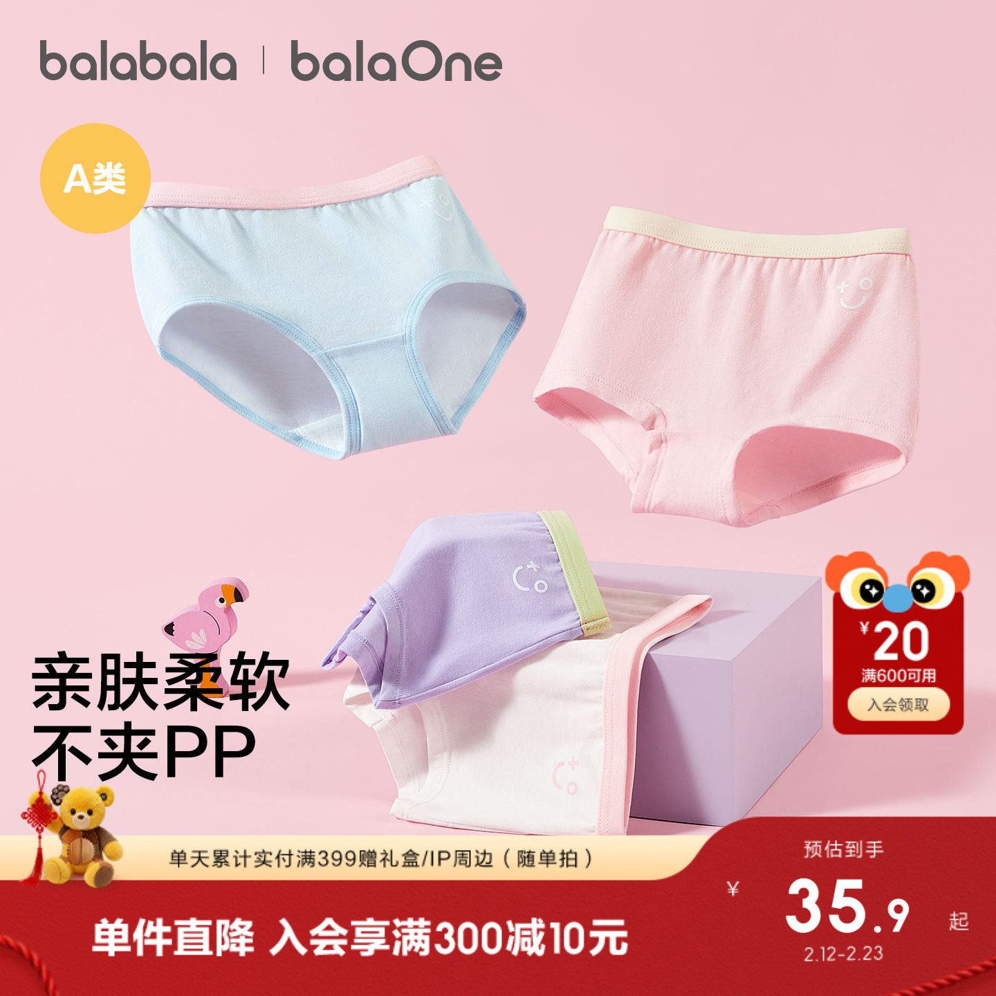 巴拉巴拉女童内裤纯棉儿童平角短裤小童大童三角短裤子亲肤三条装