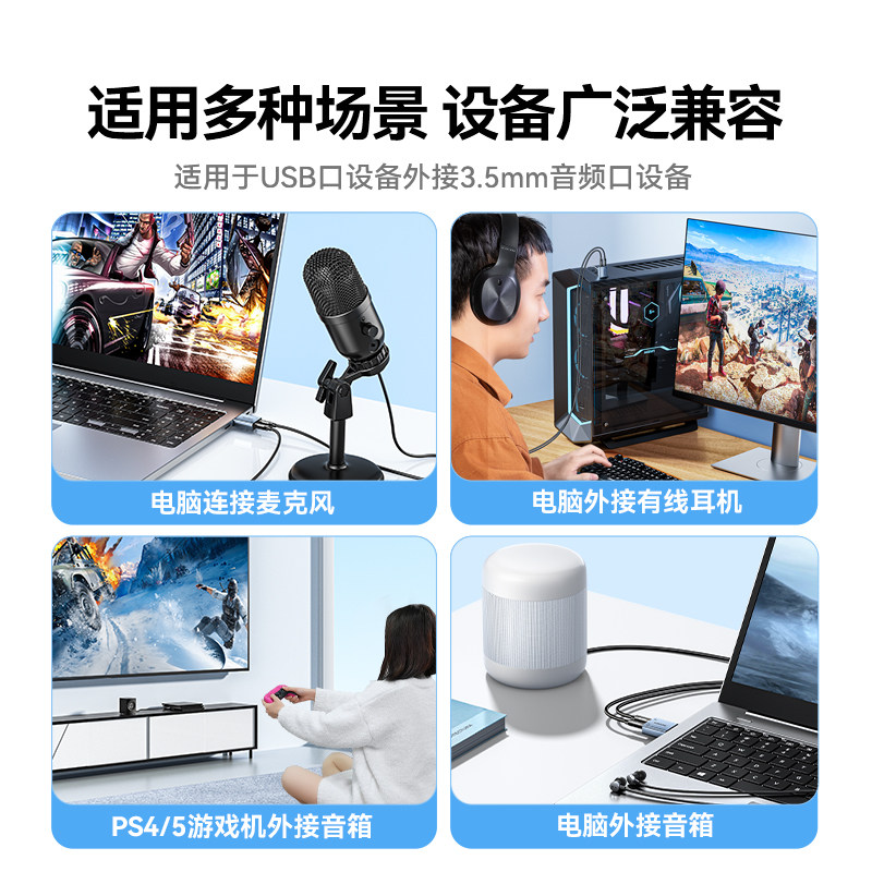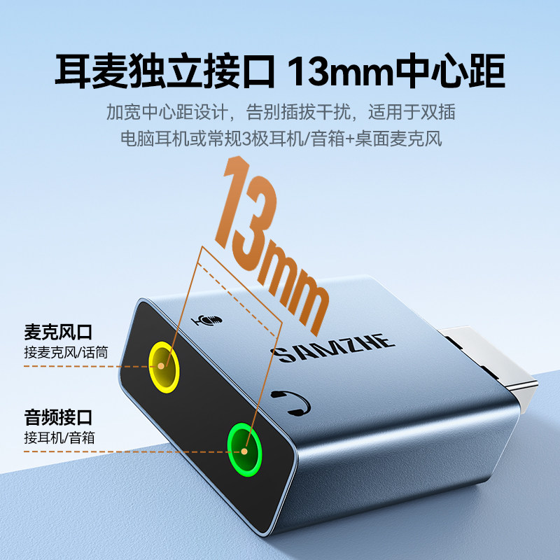 山泽USB外置声卡台式电脑笔记本外接3.5音箱耳机二合一免驱转换器