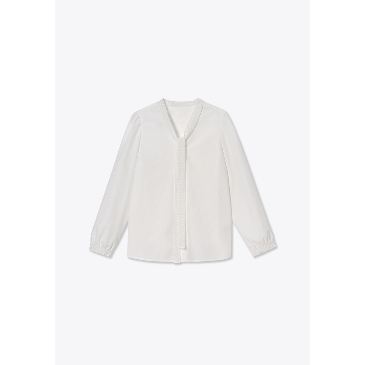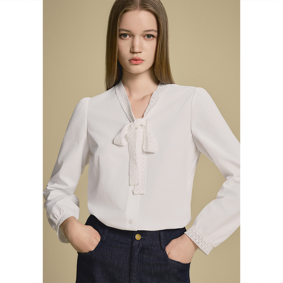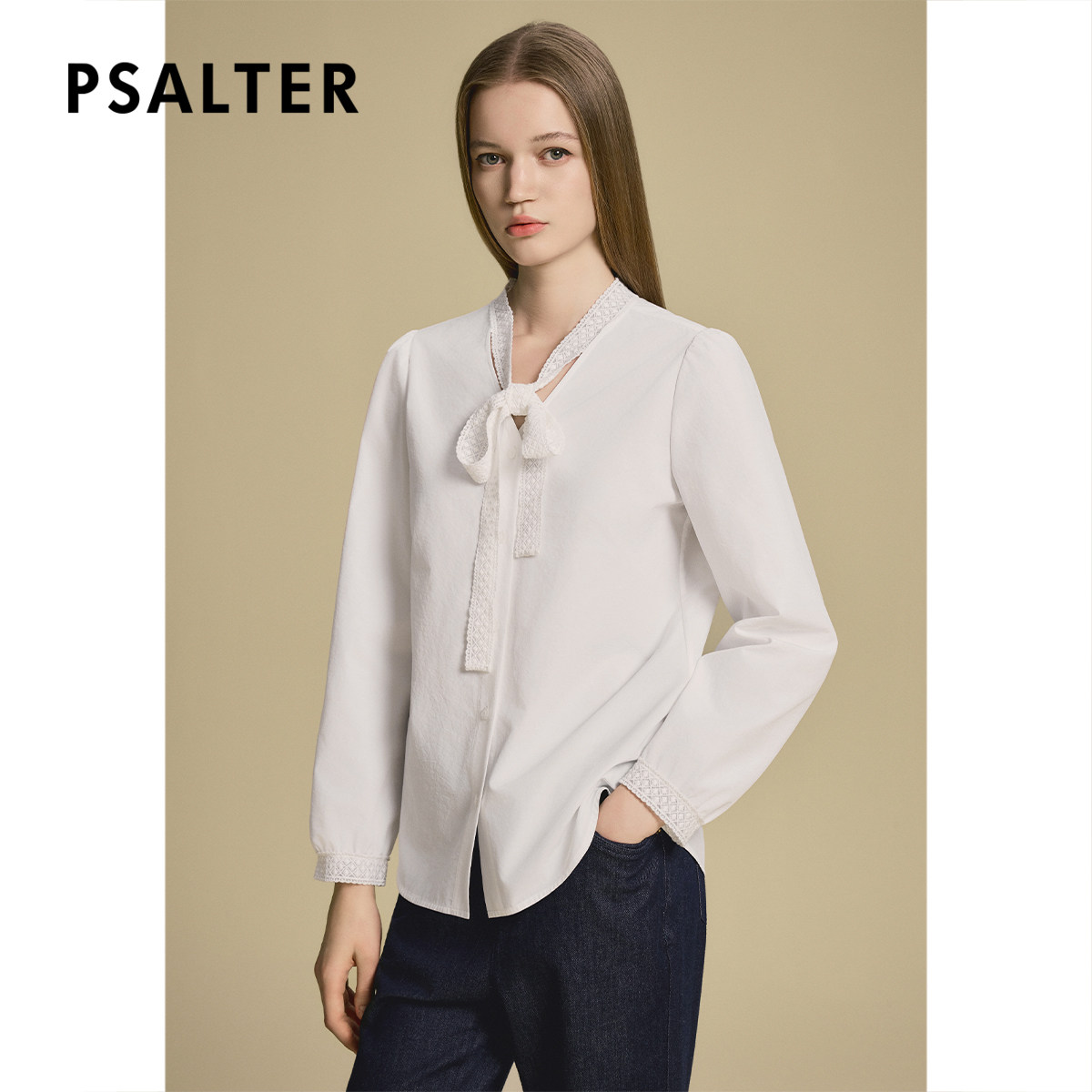 诗篇专选智性飘带领灯笼袖花边拼接女衬衫2025秋款