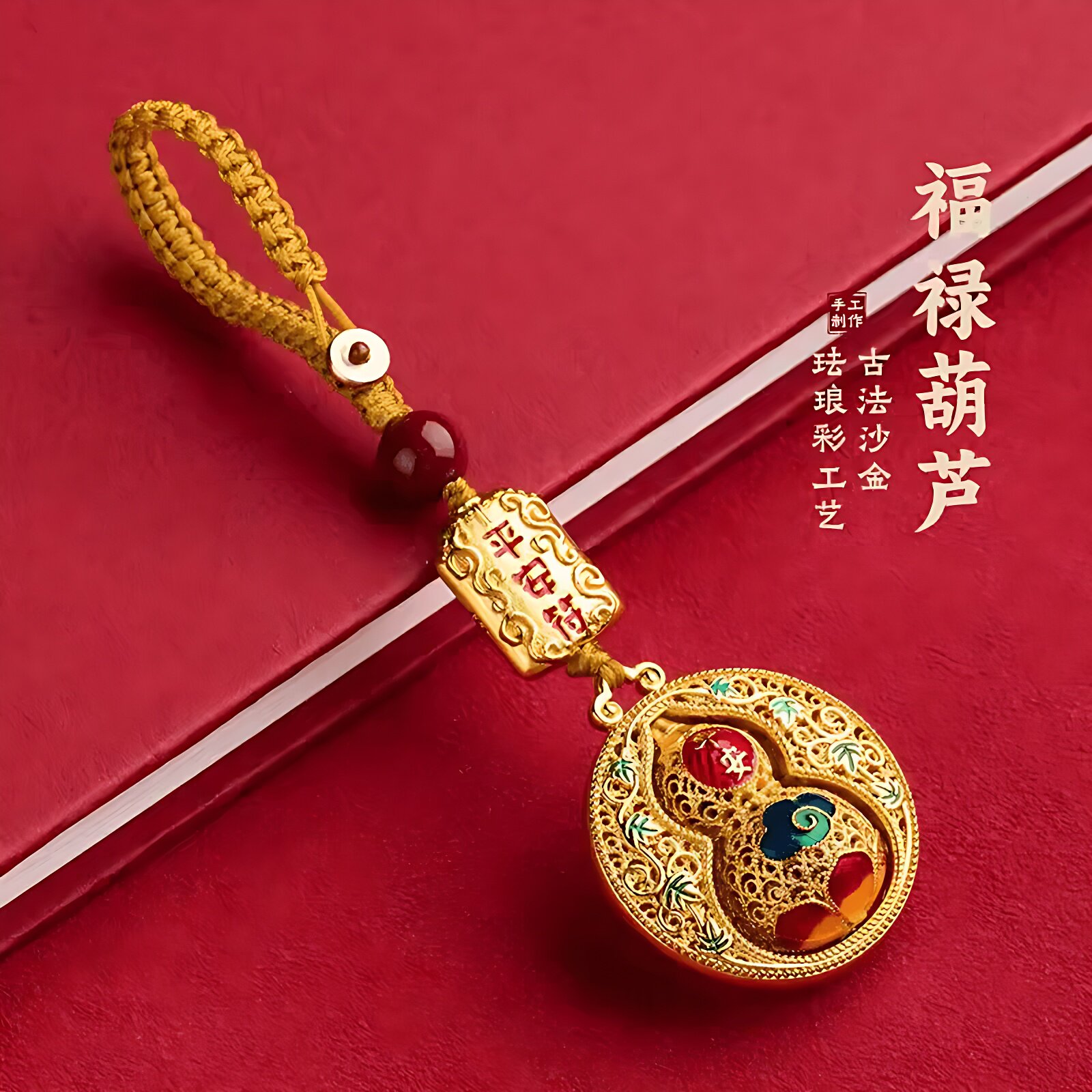 创意沙金平安葫芦钥匙扣新款福禄挂饰招财进宝转运护身保平安挂饰