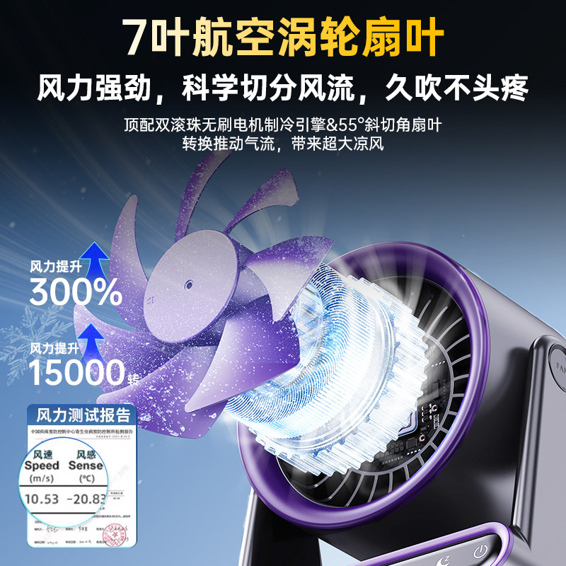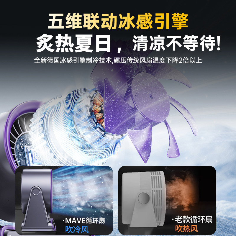 2026新款可摇头桌面空调风扇宿舍办公室桌上夏天降温神器充电壁挂定时家用降温循环扇制冷厨房超长续航便携式