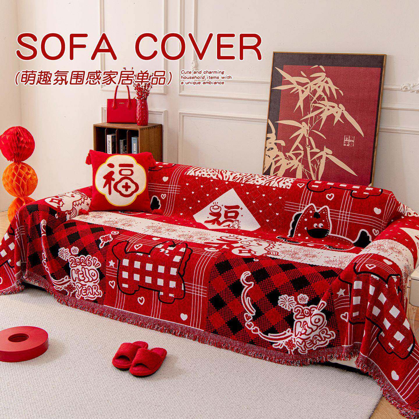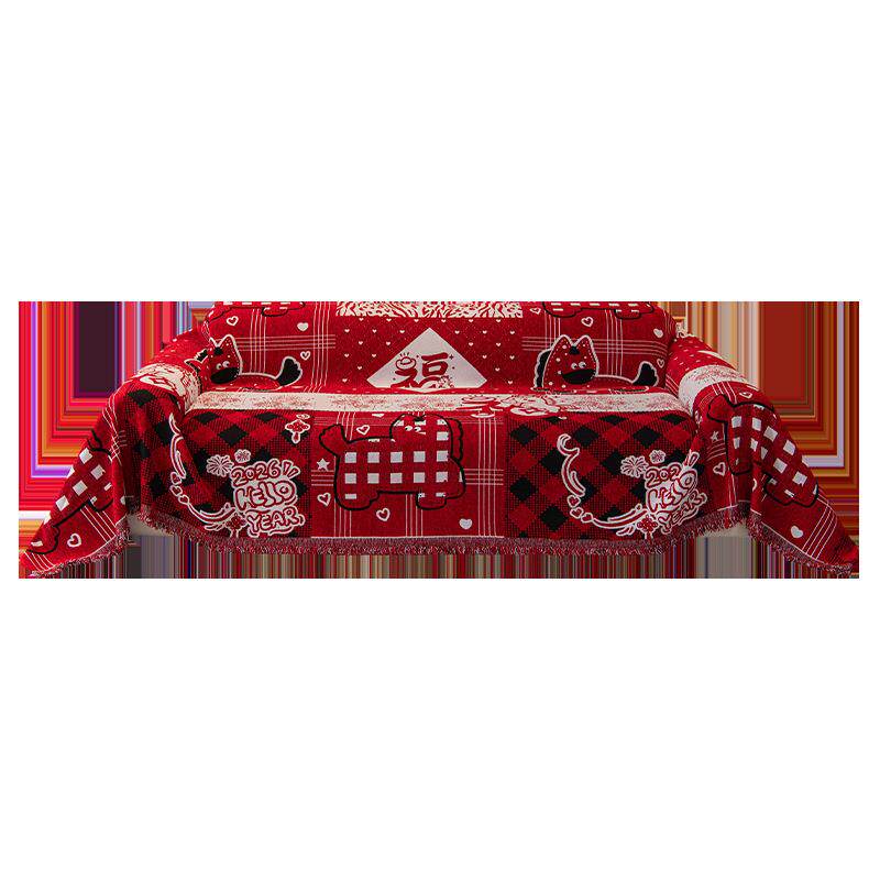 2026新款福气红色喜庆款雪尼尔四季通用沙发巾沙发盖布全盖毯套罩