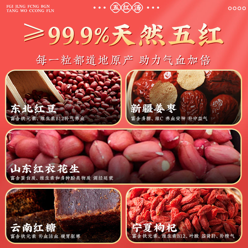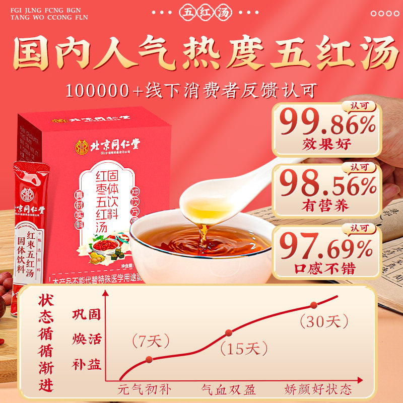 北京同仁堂五红汤补气养血五红粉原材料下奶哺乳期产后包气血红枣