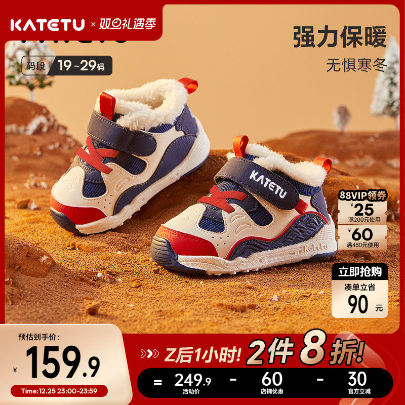 卡特兔童鞋保暖加厚学步鞋机能男童女童加绒儿童冬季鞋子棉鞋