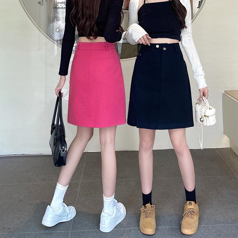 RAPPEYE口袋工装裙美式复古简约a字休闲设计感百搭中长款半身裙潮