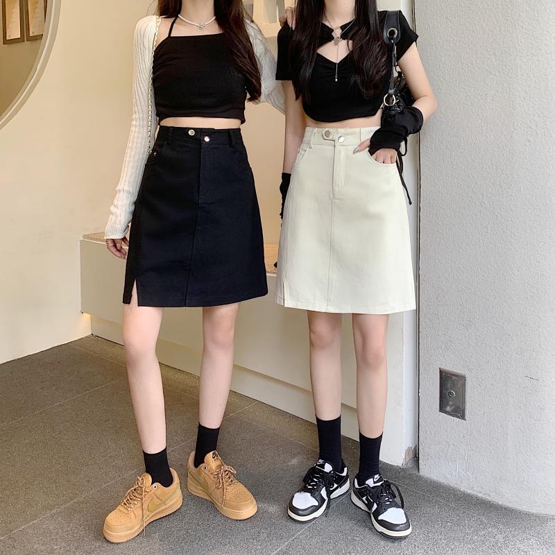 大码开叉牛仔半身裙女中长款夏胖mm新款a字百搭高腰显瘦包臀裙子