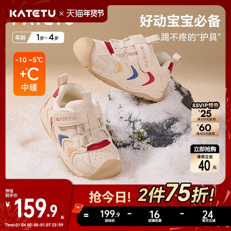 卡特兔童鞋男童宝宝秋冬小白鞋儿童女童鞋子婴儿机能女宝学步鞋