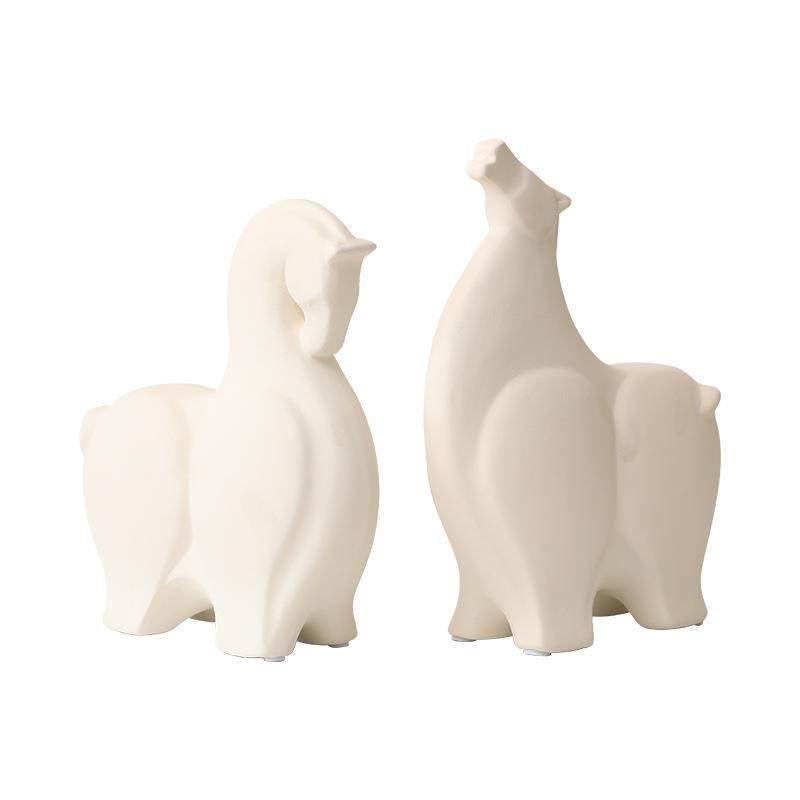 简约抽象黑白条磨砂马摆件陶瓷工艺品软装饰品创意民宿样板房摆设