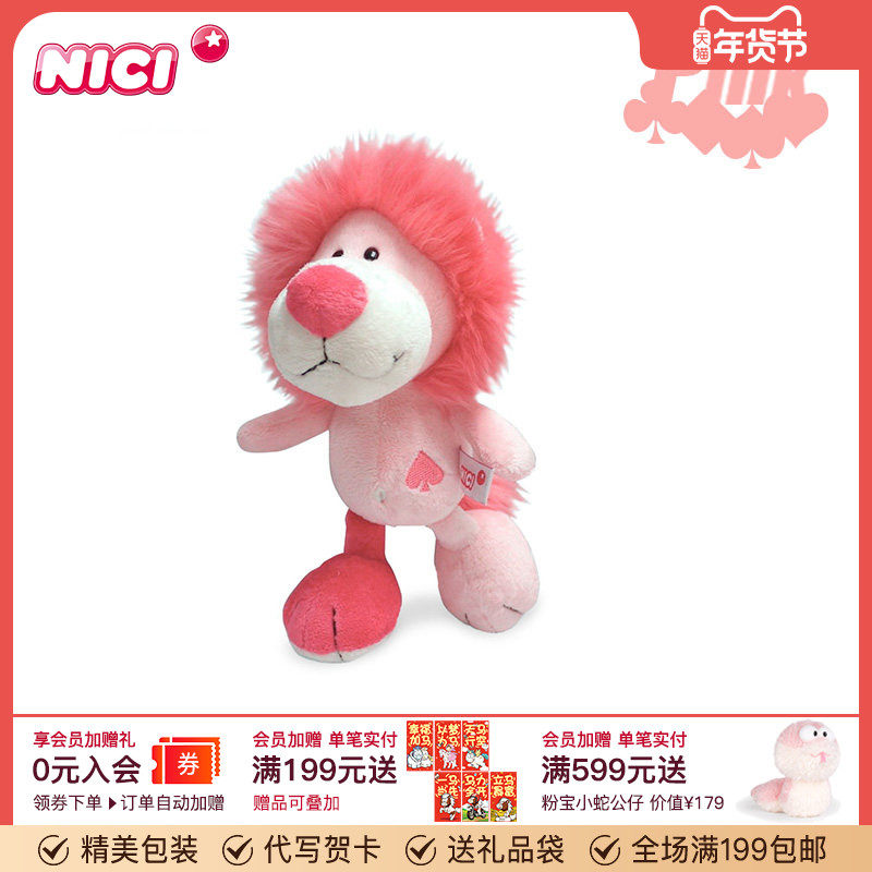 德国NICI黑桃狮毛绒玩具粉红派对公仔少女心可爱狮子玩偶生日礼物