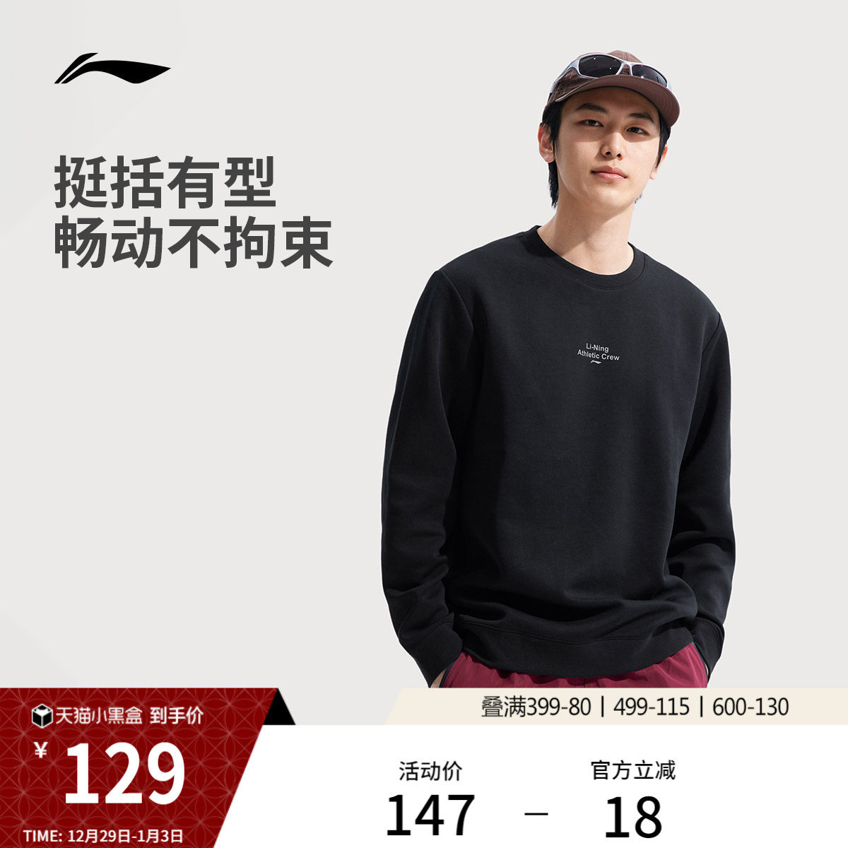 李宁卫衣男士冬季官方健身跑步男装套头衫长袖圆领上衣针织运动服