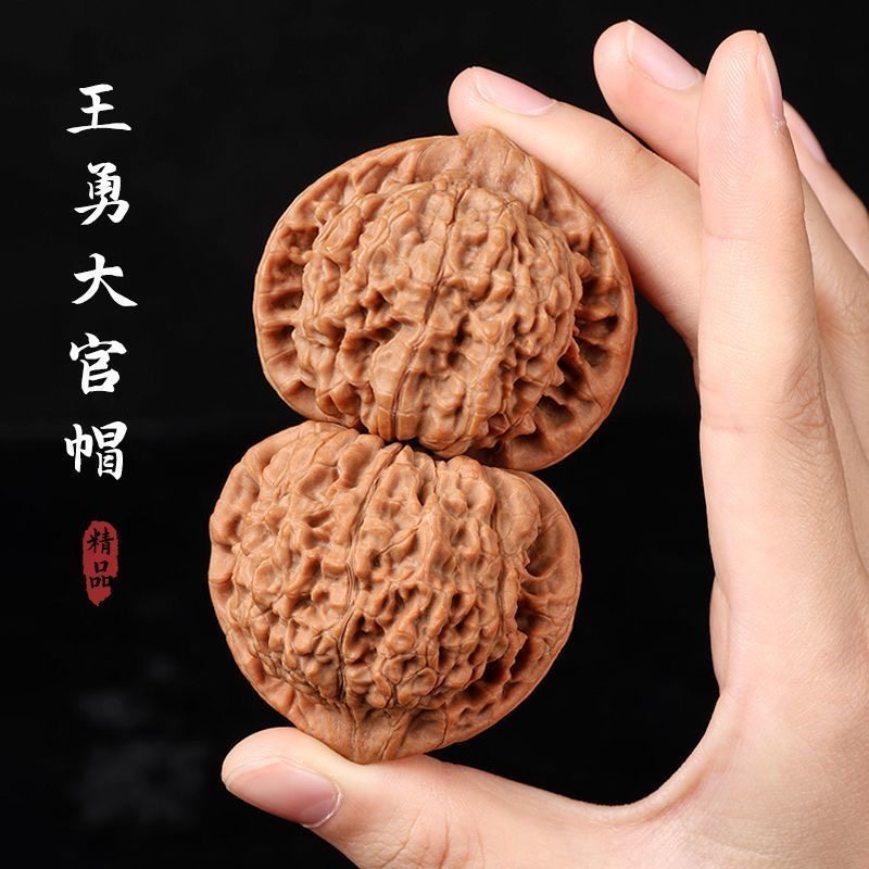 文玩核桃麒麟纹官帽野生核桃50-55盘玩白茬矮桩王勇