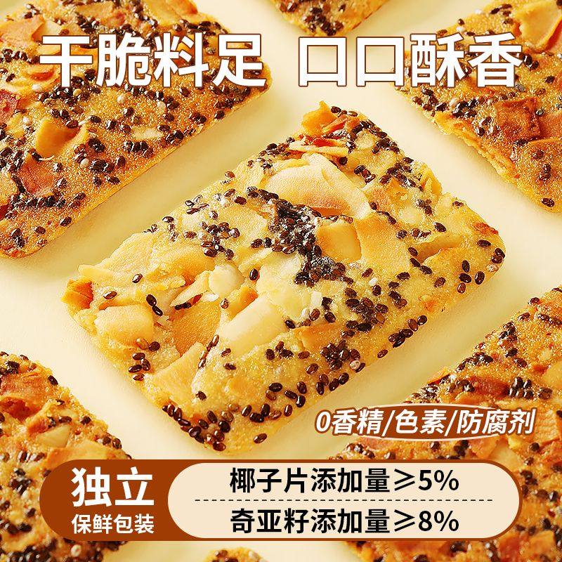 【品质推荐】奇亚籽椰子脆片坚果饼干红枣山药薄饼包装休闲小零食