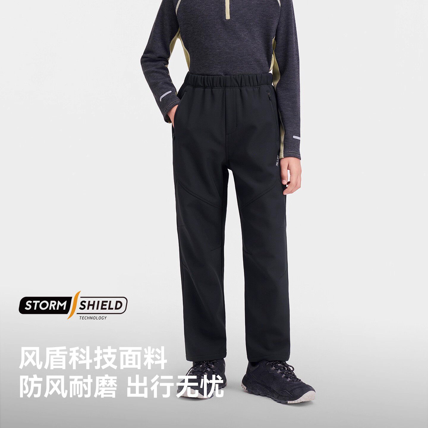 伯希和户外软壳裤儿童秋冬新款防风保暖运动裤摇粒绒内里休闲长裤