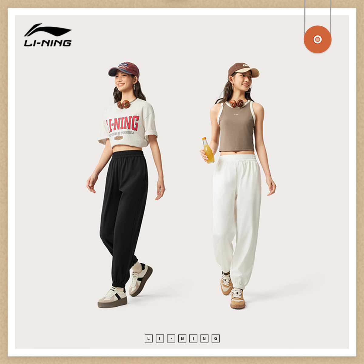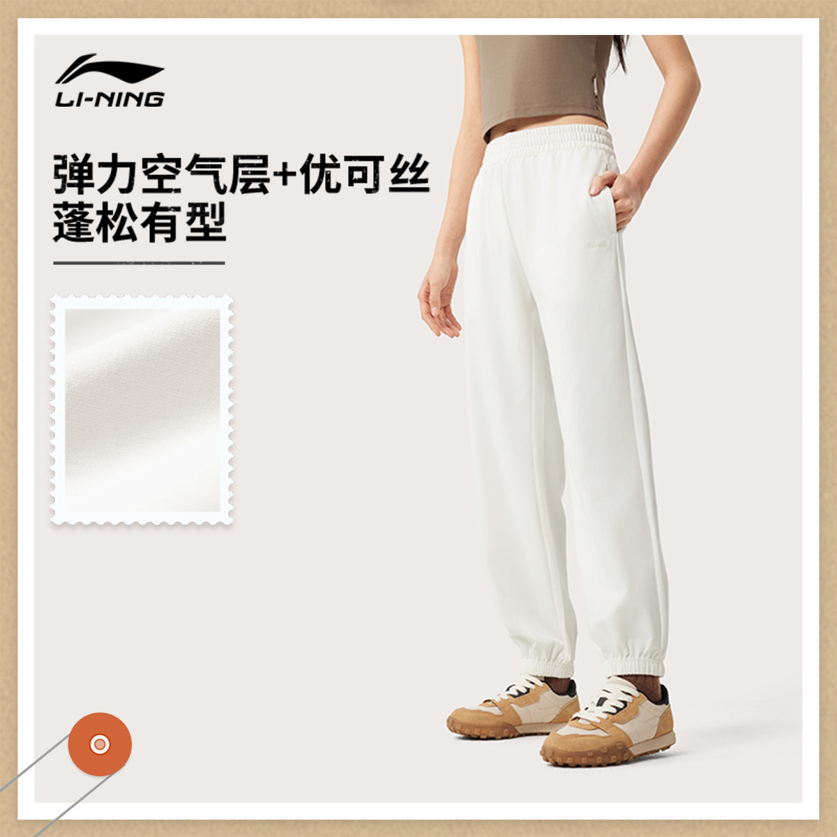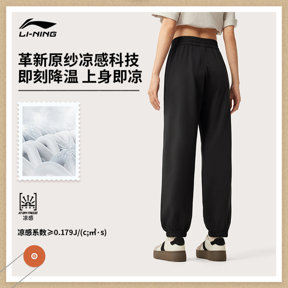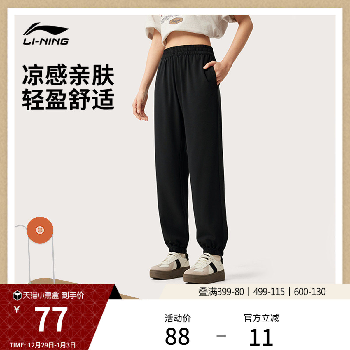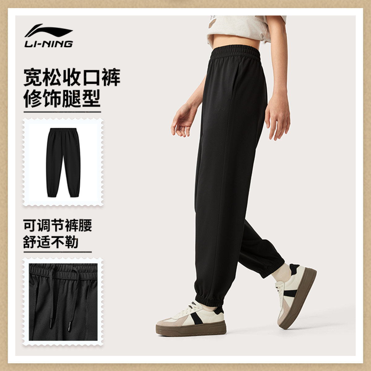 李宁卫裤女秋季休闲裤女跑步裤透气宽松针织束脚运动速干裤女款