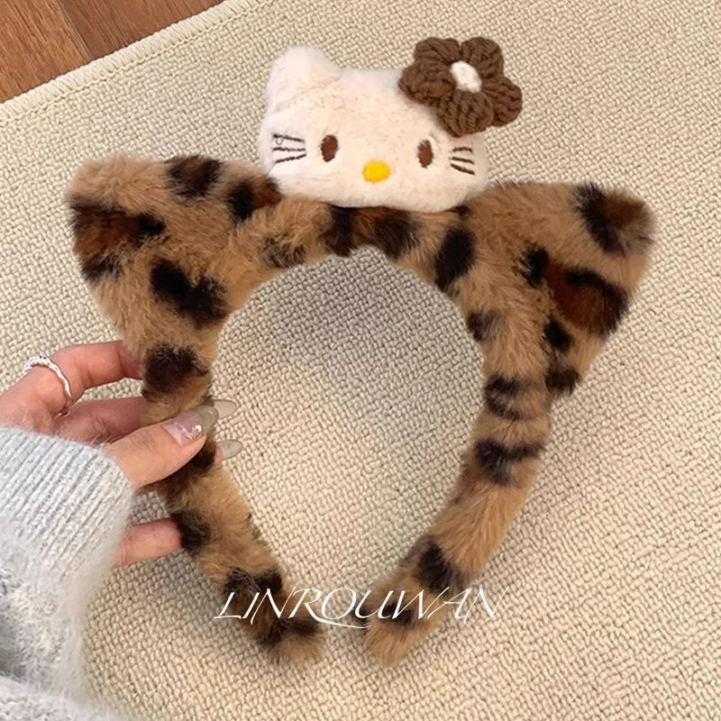 可爱豹纹猫咪毛绒发箍居家少女洗脸甜美头箍化妆面膜压发发卡发箍