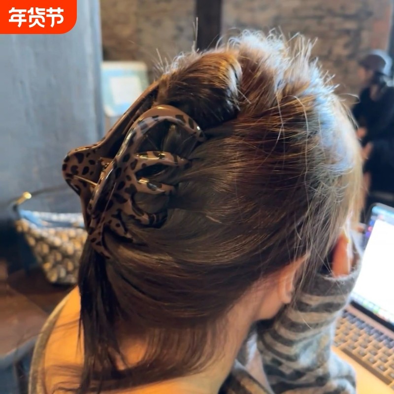 甜酷风~大号豹纹抓夹女高级感南瓜款盘发夹后脑勺发量大鲨鱼夹