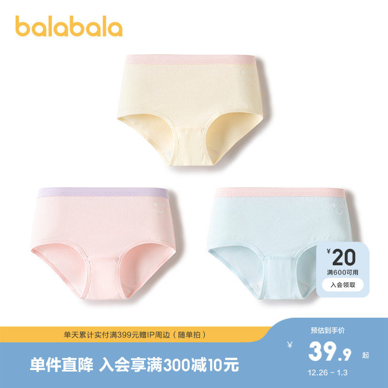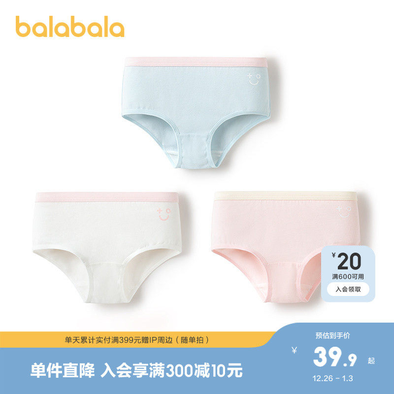 巴拉巴拉儿童内裤棉a类女童三角短裤大童男宝宝平角三条装五条装