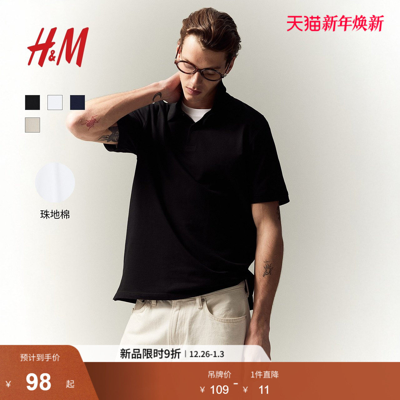 HM男装Polo衫冬季内搭打底衫休闲简约通勤舒适短袖上衣1209183