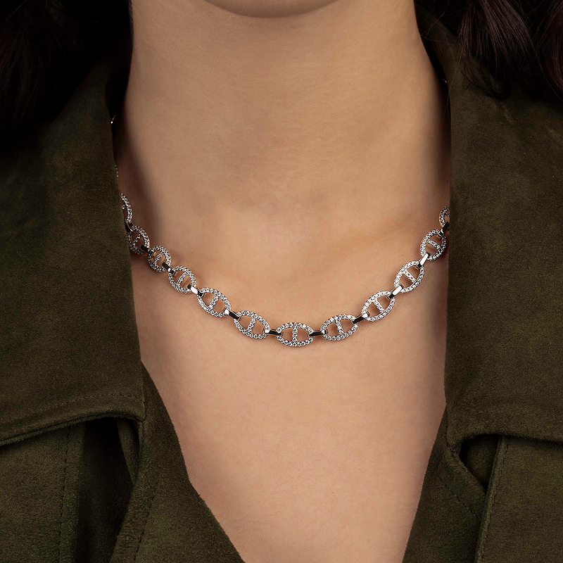 [杨紫同款]APM Monaco链环长项链女银色锁骨链送人生日新年礼物
