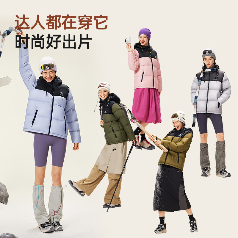 骆驼火山羽绒服女2025冬季新款情侣保暖鸭绒连帽羽绒衣外套