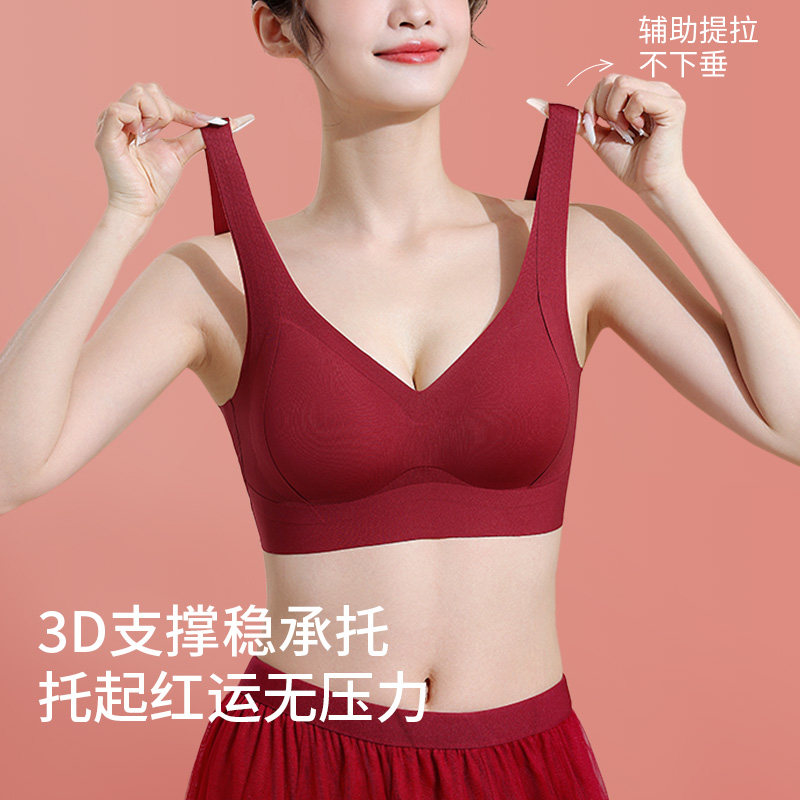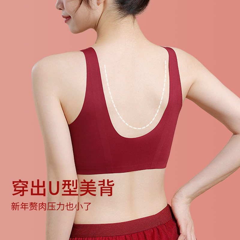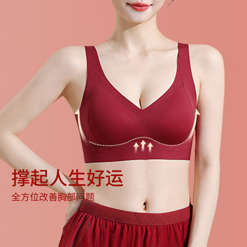 润微本命年红色内衣女收副乳防下垂小胸聚拢无痕背心式运动文胸罩
