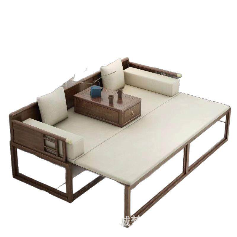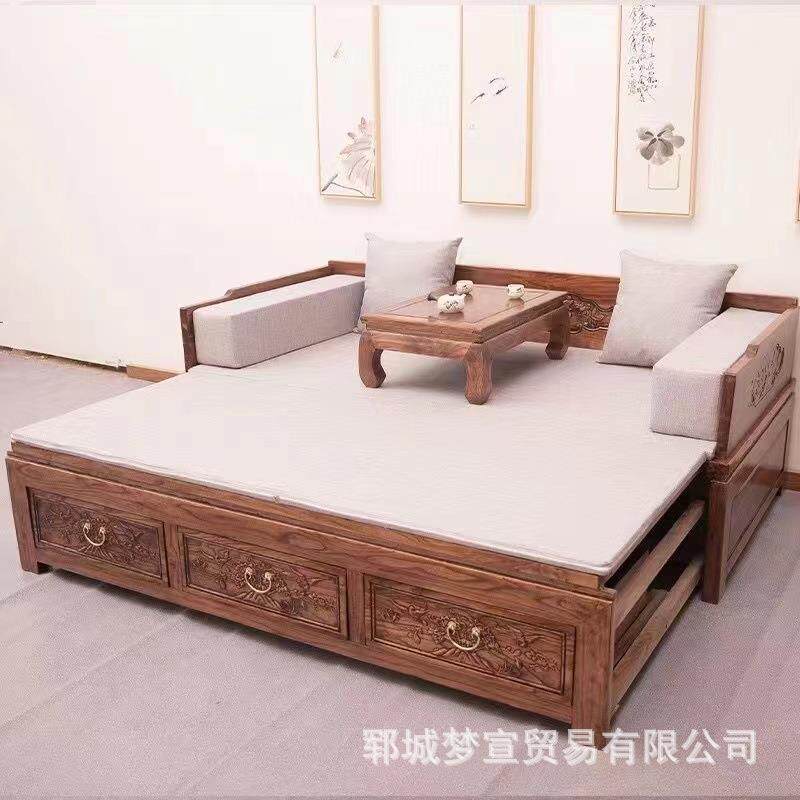 新中式老榆木长条椅禅意阳台靠背喝茶椅躺椅实木可伸缩罗汉床沙发
