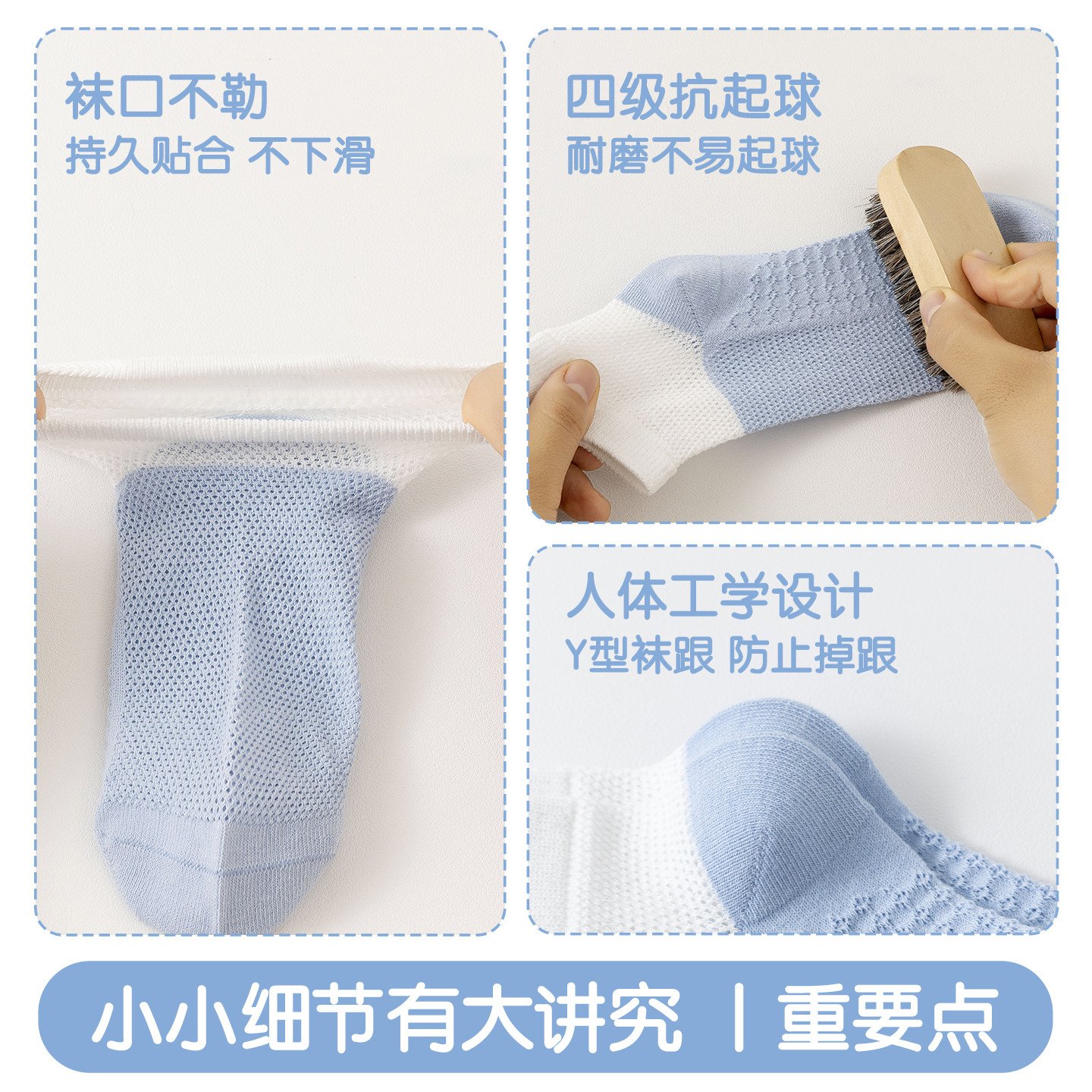 儿童袜子男童100%棉a类10A抗菌春夏季男孩纯棉网眼透气无骨船袜