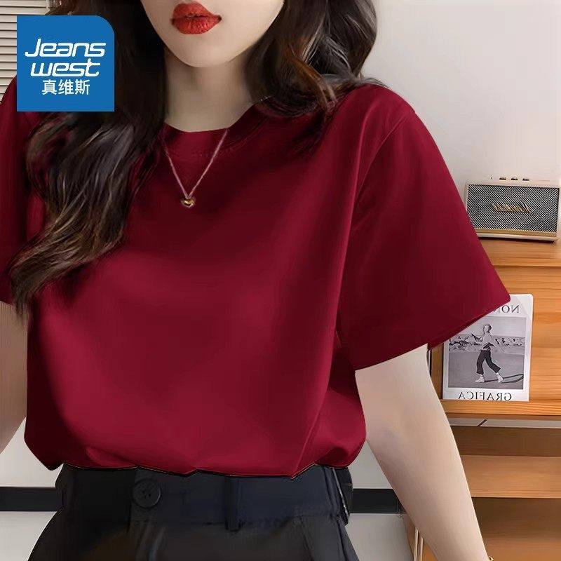 LBP真维斯红色短袖t恤女2026新款本命年马年衣服女士过年纯棉体恤