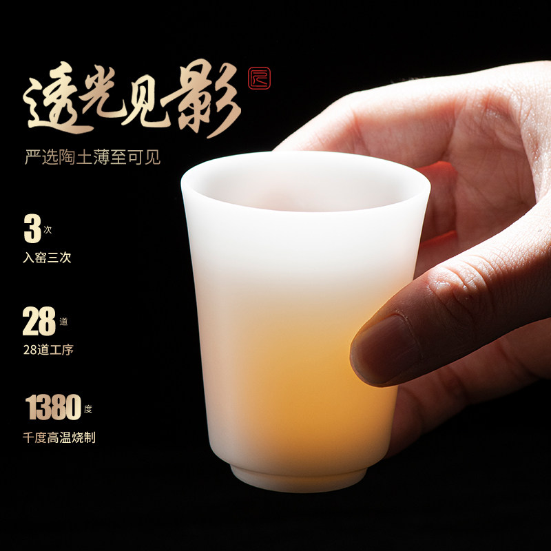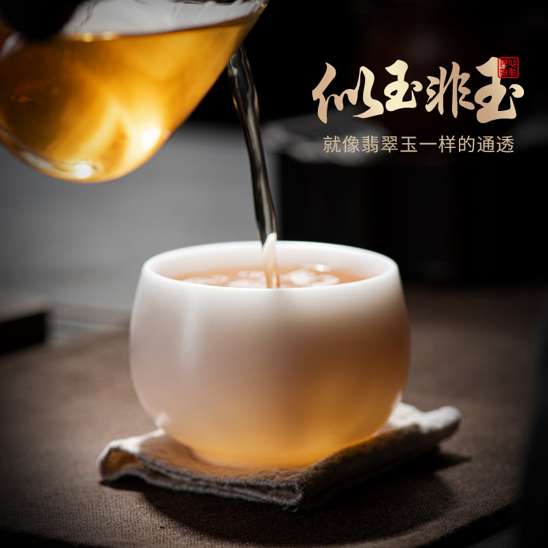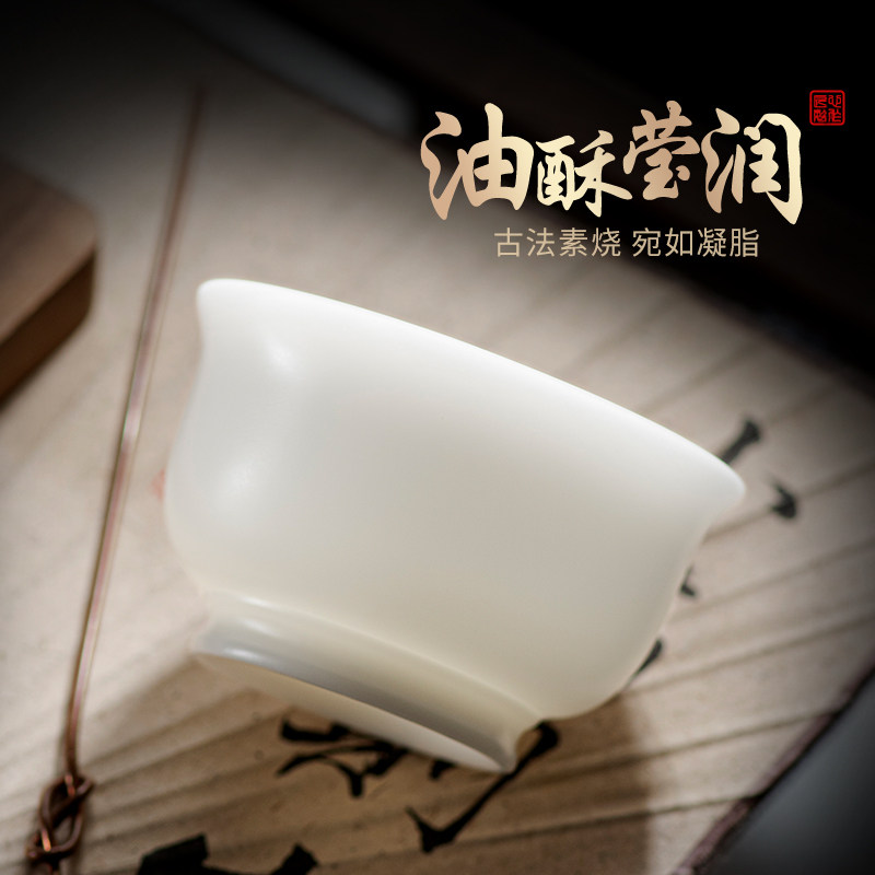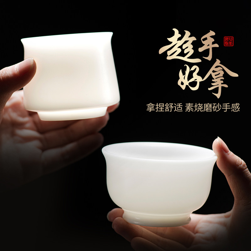 冰种玉瓷主人杯茶杯喝水品茗功夫单杯羊脂玉白瓷茶盏高档个人专用