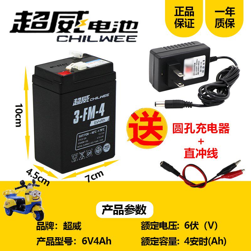 超威石墨烯电子秤电池专用通用台秤4伏蓄电池4v4ah20h童车6V4电瓶