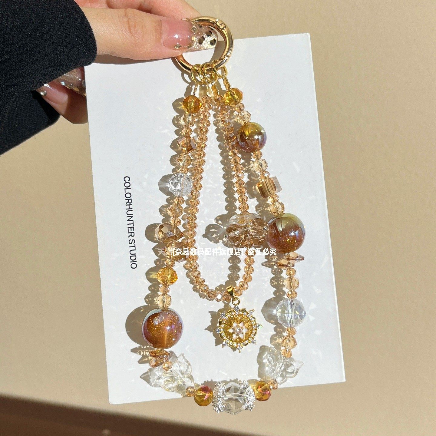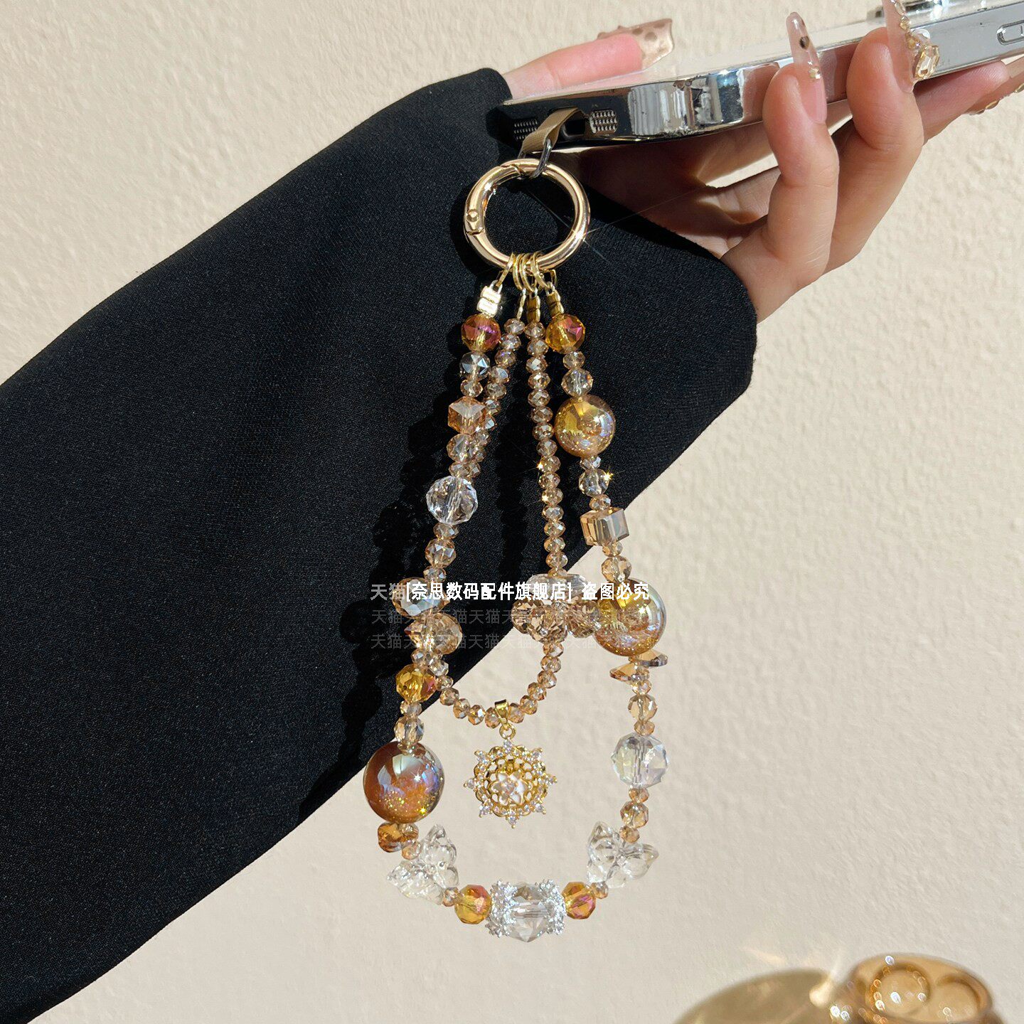超显气质手机链挂饰巨好看太阳星吊坠链条黄水晶手腕绳挂件高级精致挂链新款串珠手链包包挂饰垫片女士腕带壳
