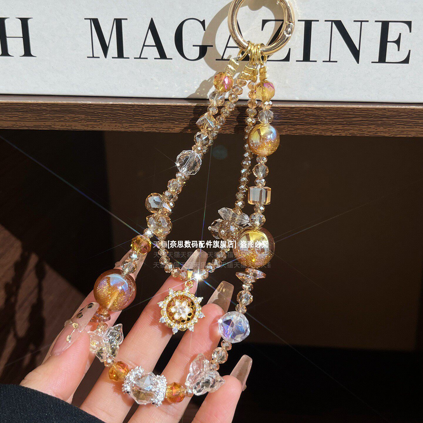 奢华高级感水晶手提链条手腕短挂绳带夹片壳钥匙扣包包挂件潮