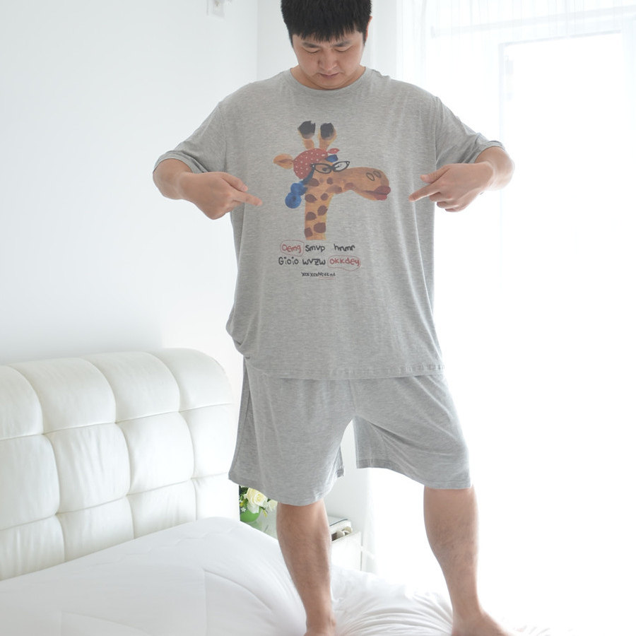 加肥加大码短袖短裤情侣睡衣男女夏季莫代尔卡通休闲家居服200斤