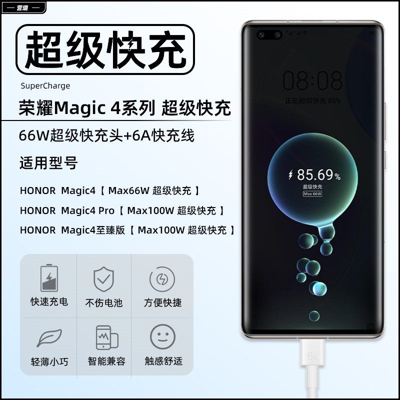 适用华为荣耀Magic4 Pro充电器头100W瓦超级快充荣耀Magic4手机充电插头5G至臻版营璐正品66W快充数据线