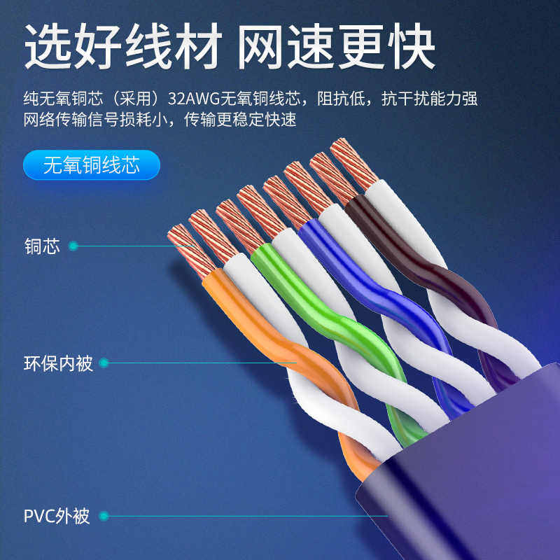 千兆扁平网线六6类家用超薄纯铜高速电脑网络宽带线5/10/20/30米m
