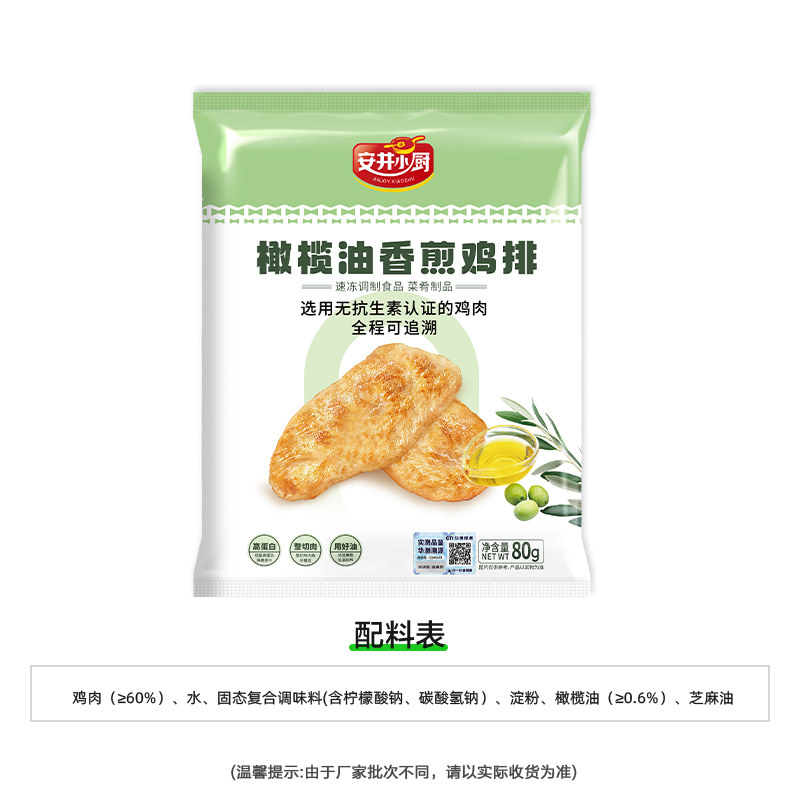 安井小厨 橄榄油香煎鸡排80g*10片鸡胸肉无抗半成品轻食代餐主食