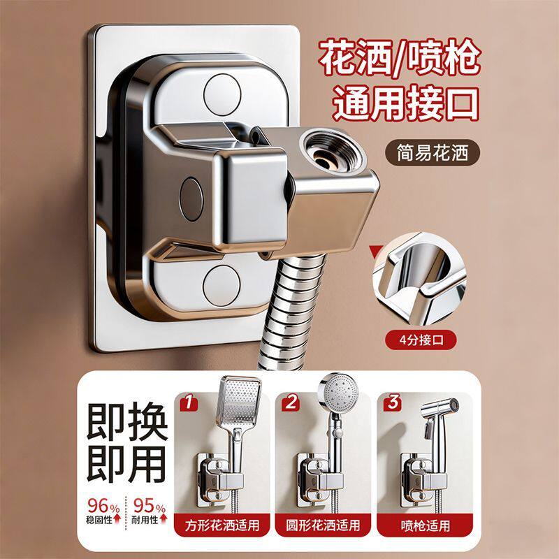 轻奢吸盘花洒支架免打孔固定座淋浴喷头支架神器可调节墙底座架