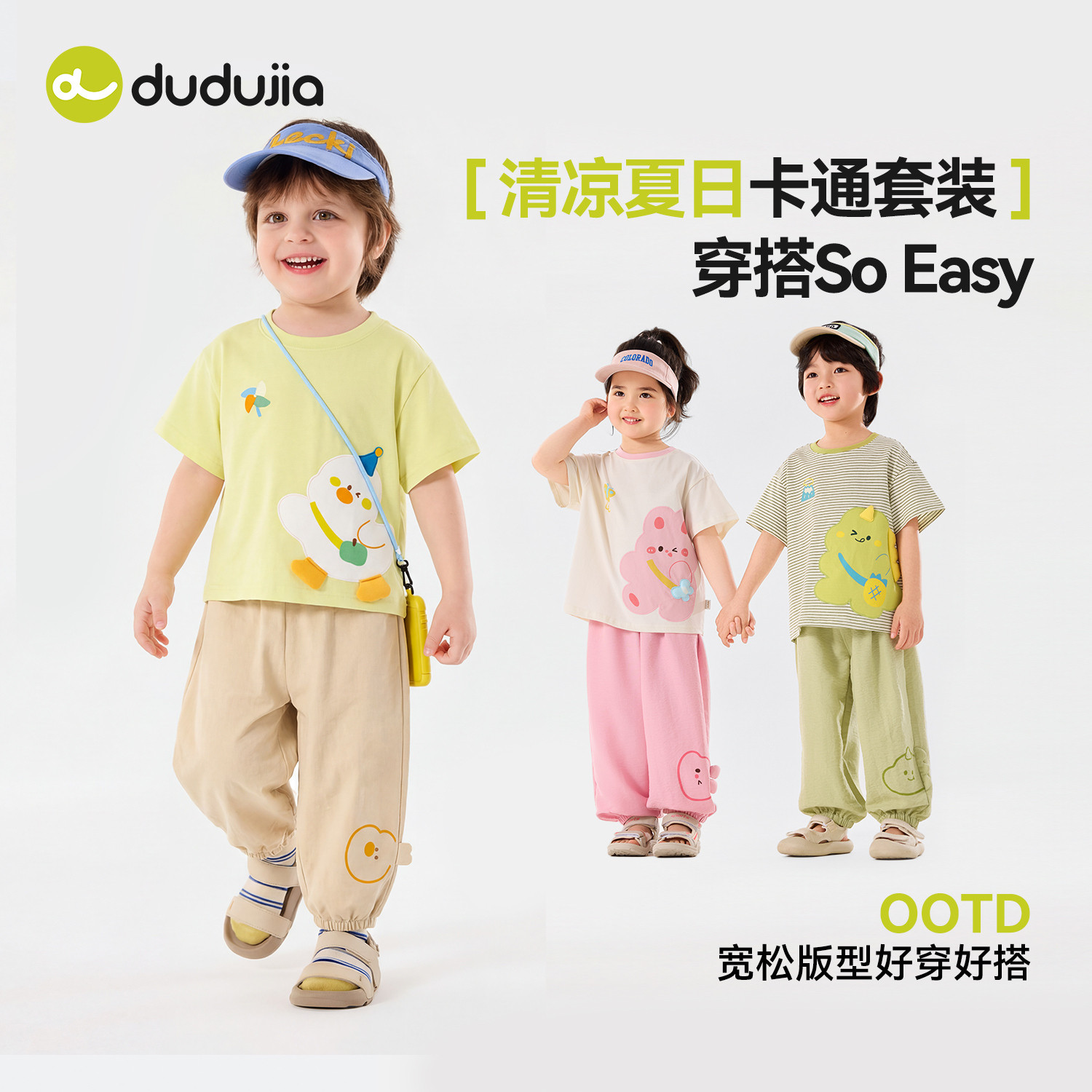 嘟嘟家儿童短袖套装夏季男童短袖女童长裤童装宝宝夏装短t裤子潮
