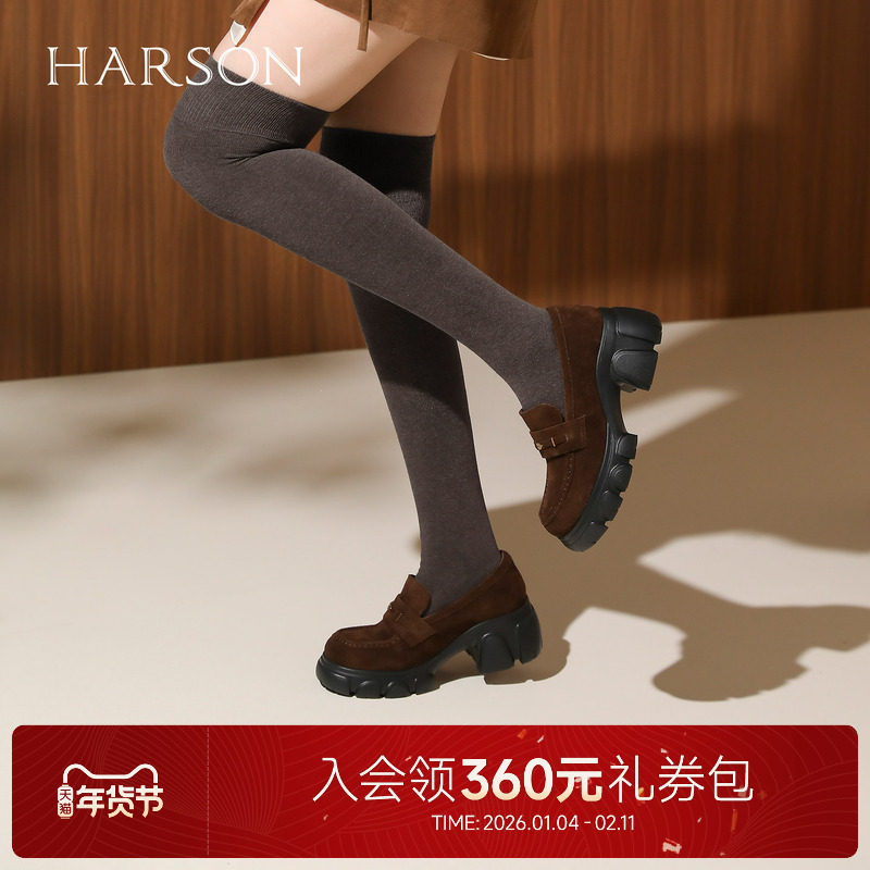 哈森学院风乐福鞋女2025秋季新款百搭圆头粗跟时装单鞋HL252507