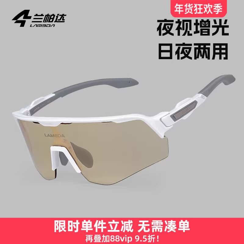 兰帕达夜跑夜骑跑步运动徒步骑行眼镜日夜两用感光变色自行车风镜