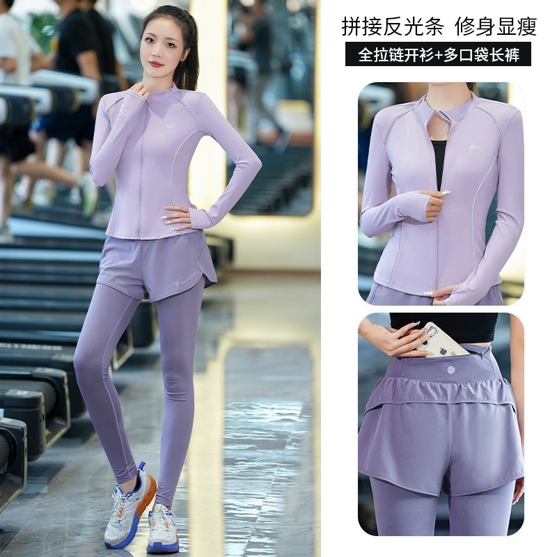 跑步运动服长袖女秋季开衫瑜伽服宽松显瘦健身服套装加绒速干滑雪
