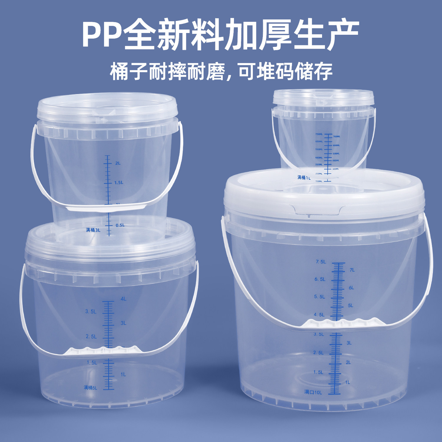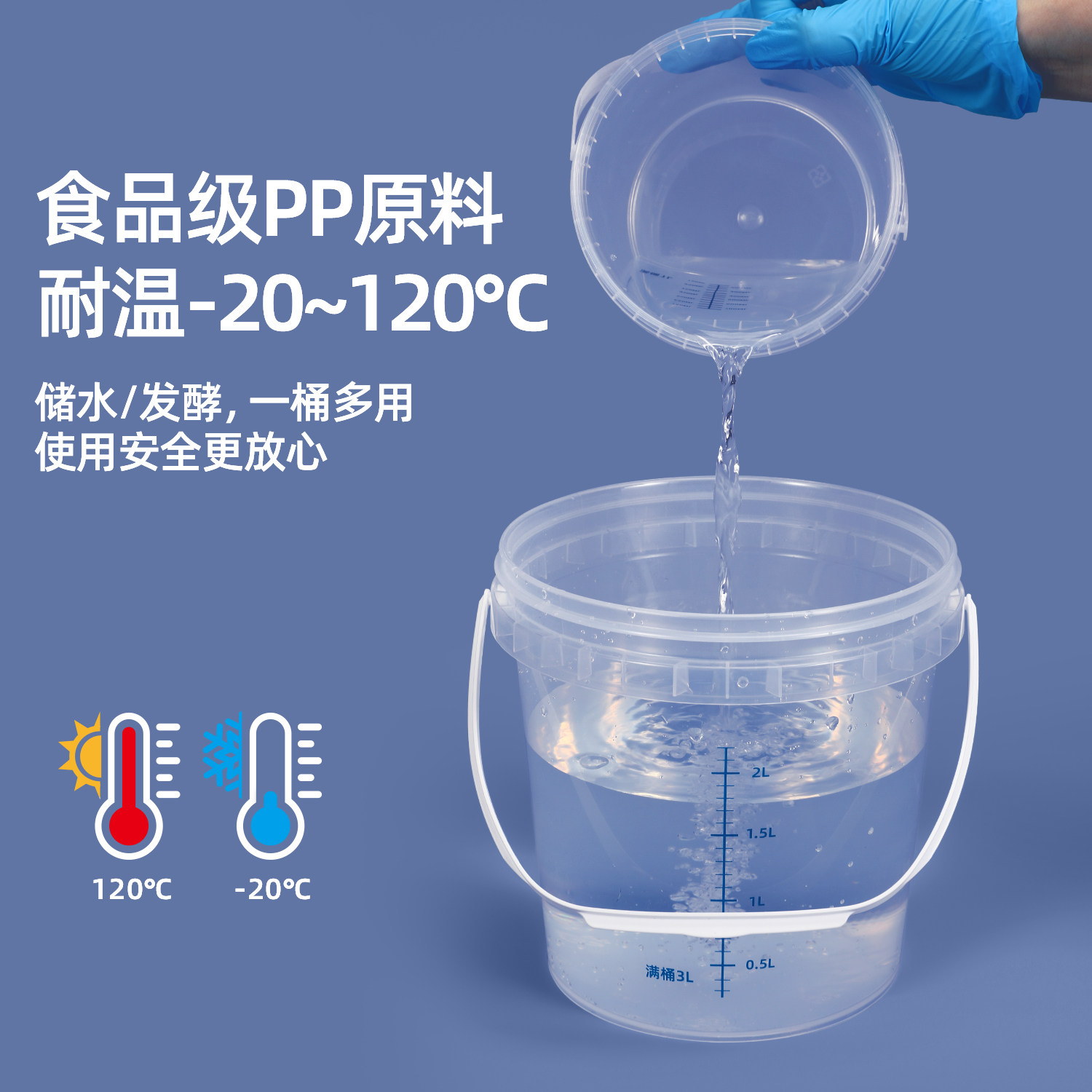 加厚食品级塑料刻度量桶大容量水桶老面透明圆桶密封带盖储水发酵