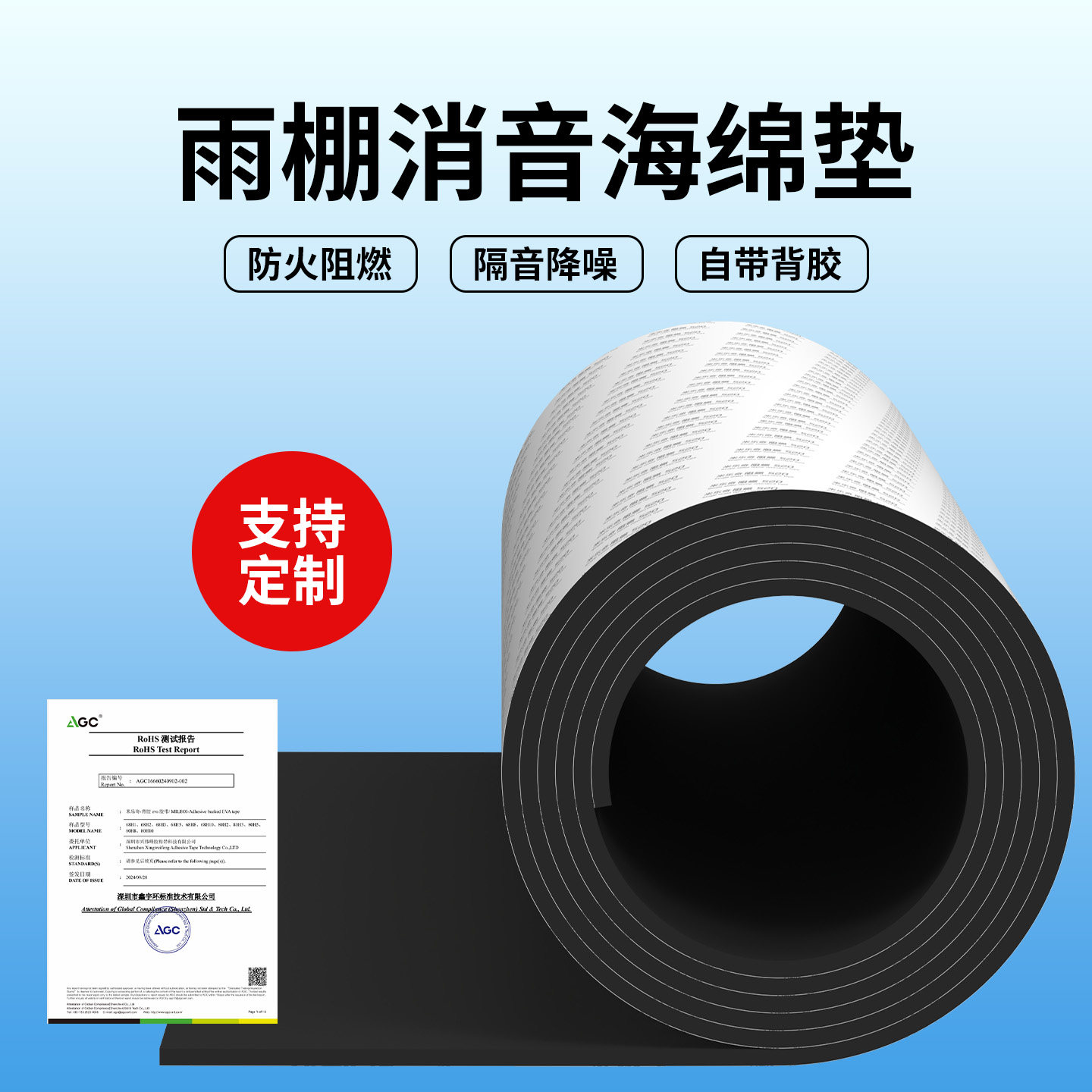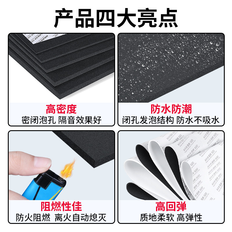 铁皮雨棚隔音棉消音垫阳光房玻璃防砸垫钢化玻璃防爆胶垫防晒自粘防撞隔音消音隔热耐高温阻燃海绵单面胶垫片