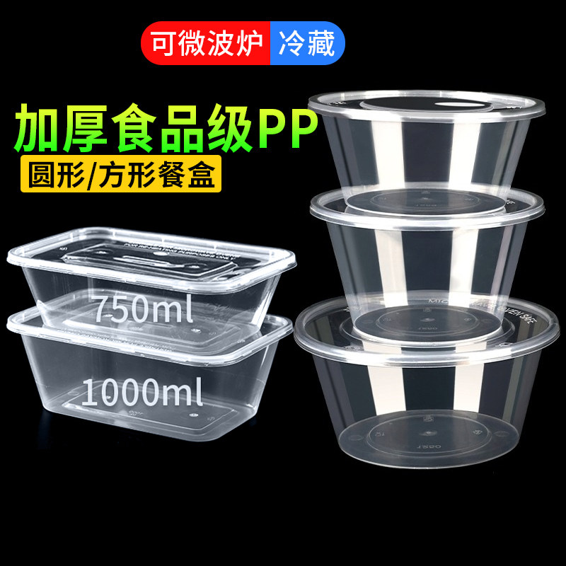 一次性饭盒加厚打包盒长方形圆形碗塑料餐盒外卖快餐带盖批发密封