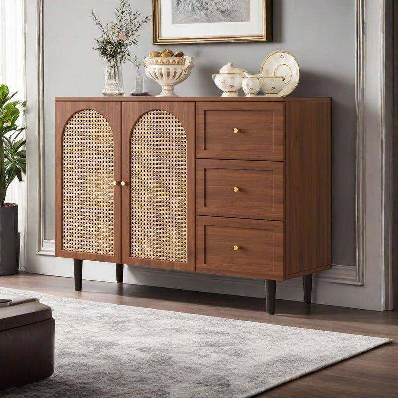 藤编餐边柜现代简约储物柜家用餐厅客厅茶水柜新中式厨房收纳橱柜