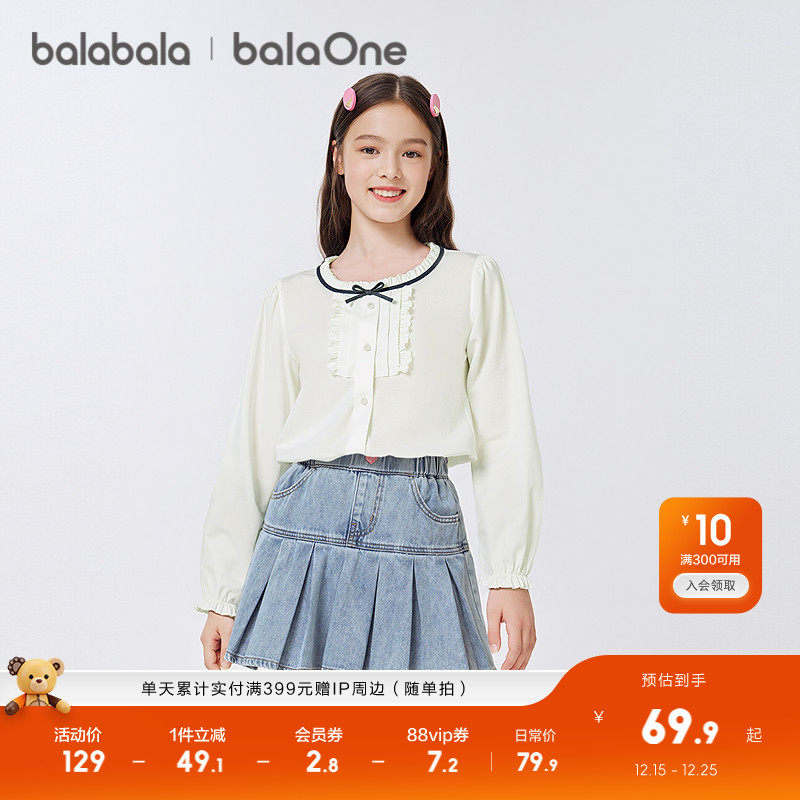 巴拉巴拉女童衬衫儿童长袖2025新款秋装精致时尚柔软甜美凉感抗菌