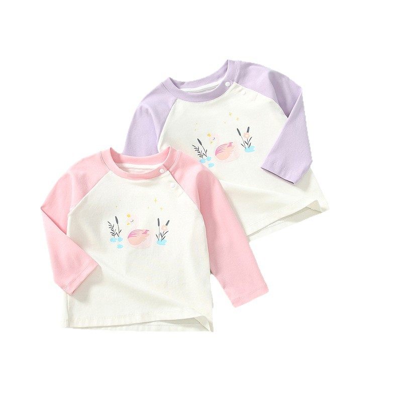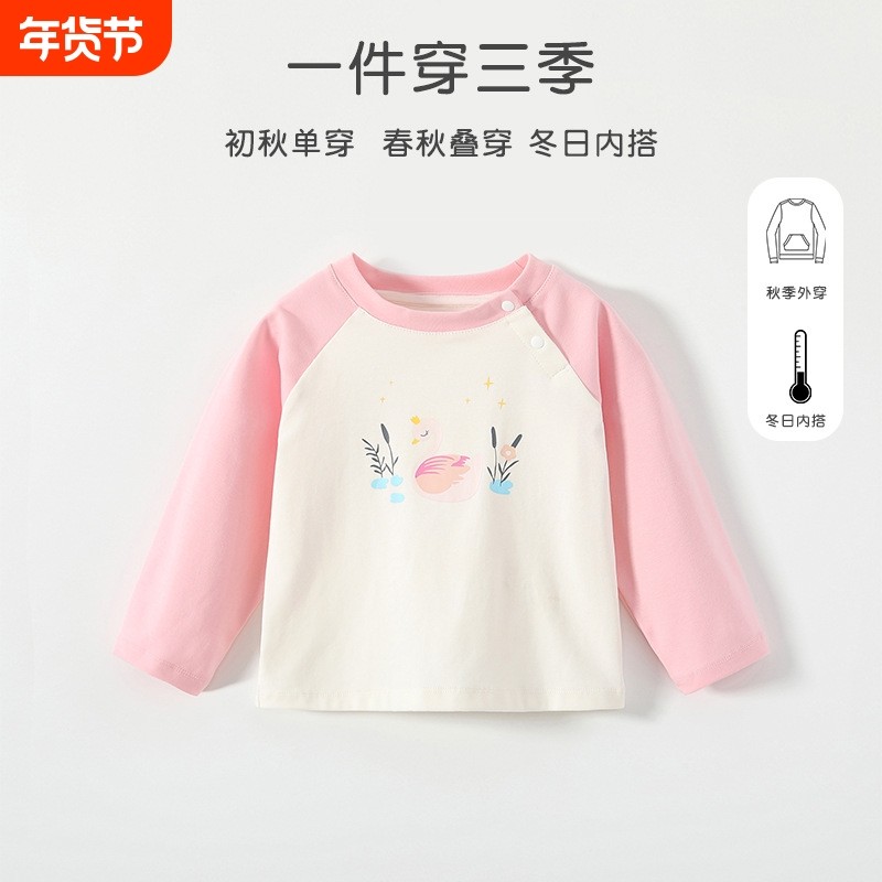女童衬衫t恤长袖2026新款A类儿童洋气撞色上衣小女孩打底衫内搭