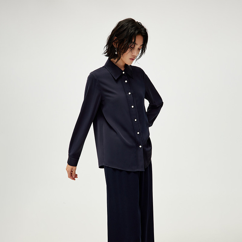 HLA/海澜之家长袖时尚衬衫2025春秋新款宽松优雅知性衬衣女装