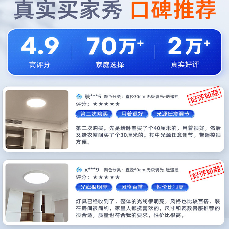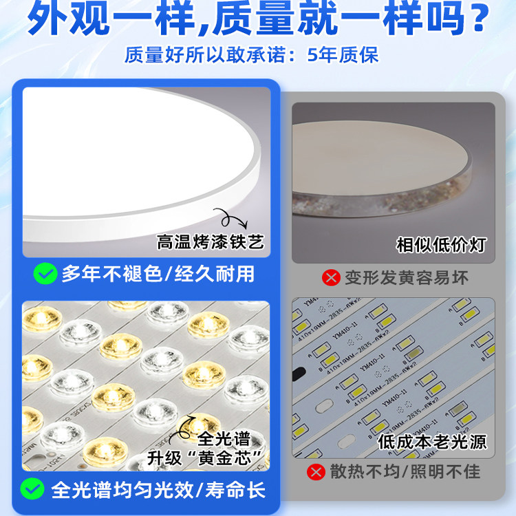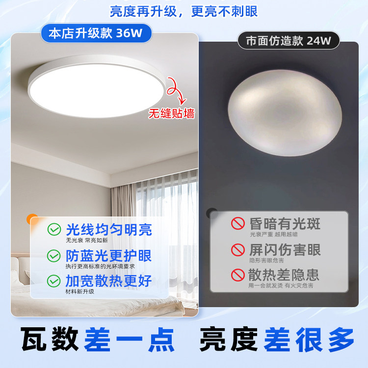 包安装全光谱护眼led吸顶灯超亮主卧卧室房间卫生间出租房免安装